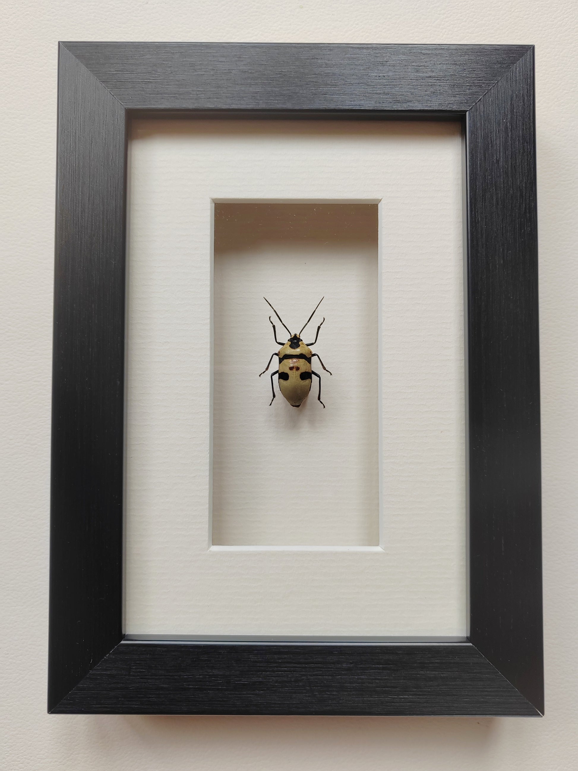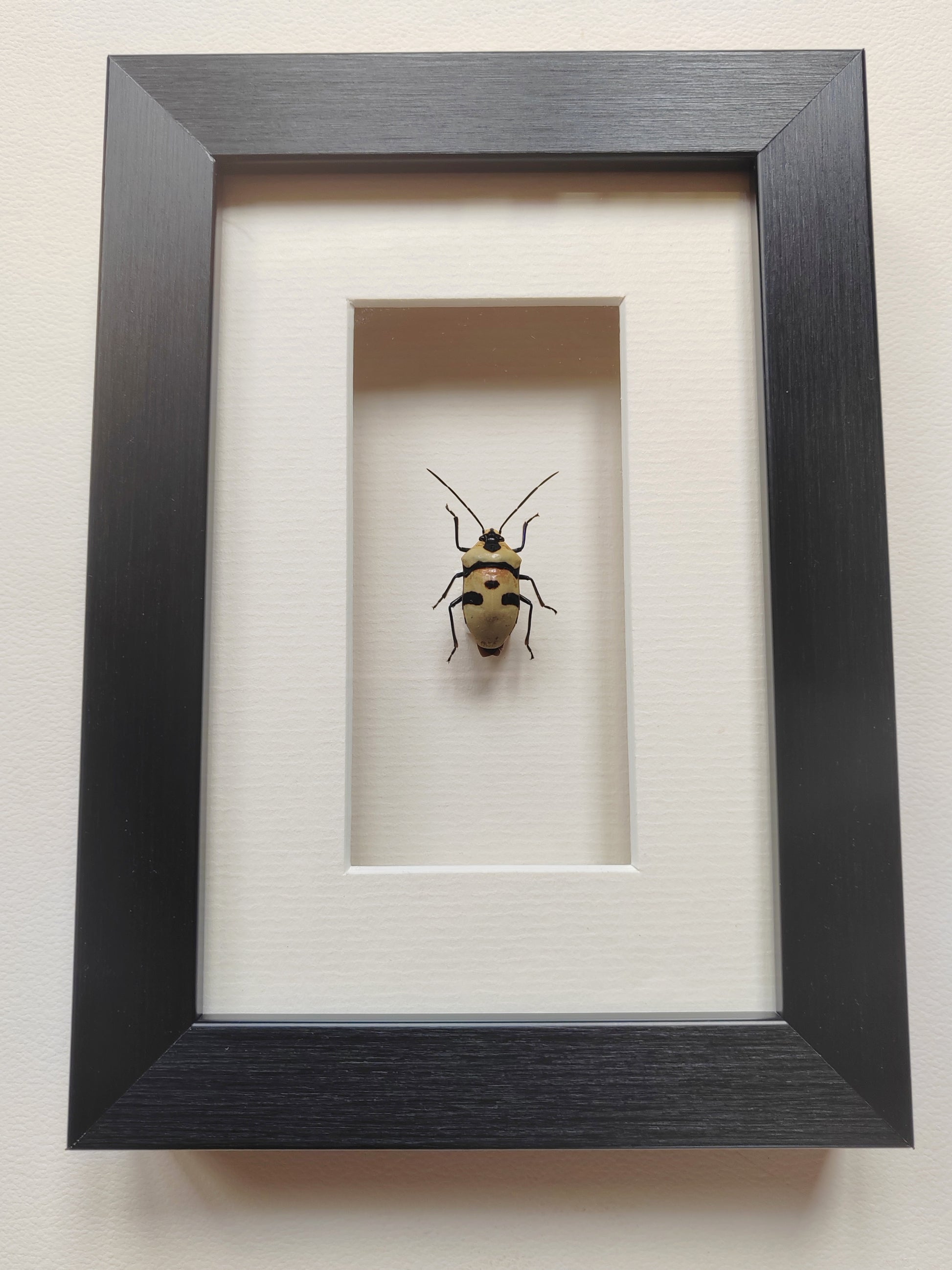 A beautiful and strange species of shield Bug, Eucorysses grandis which has a skull-like face markings on the back. This looks especially skull like when viewed upside down.