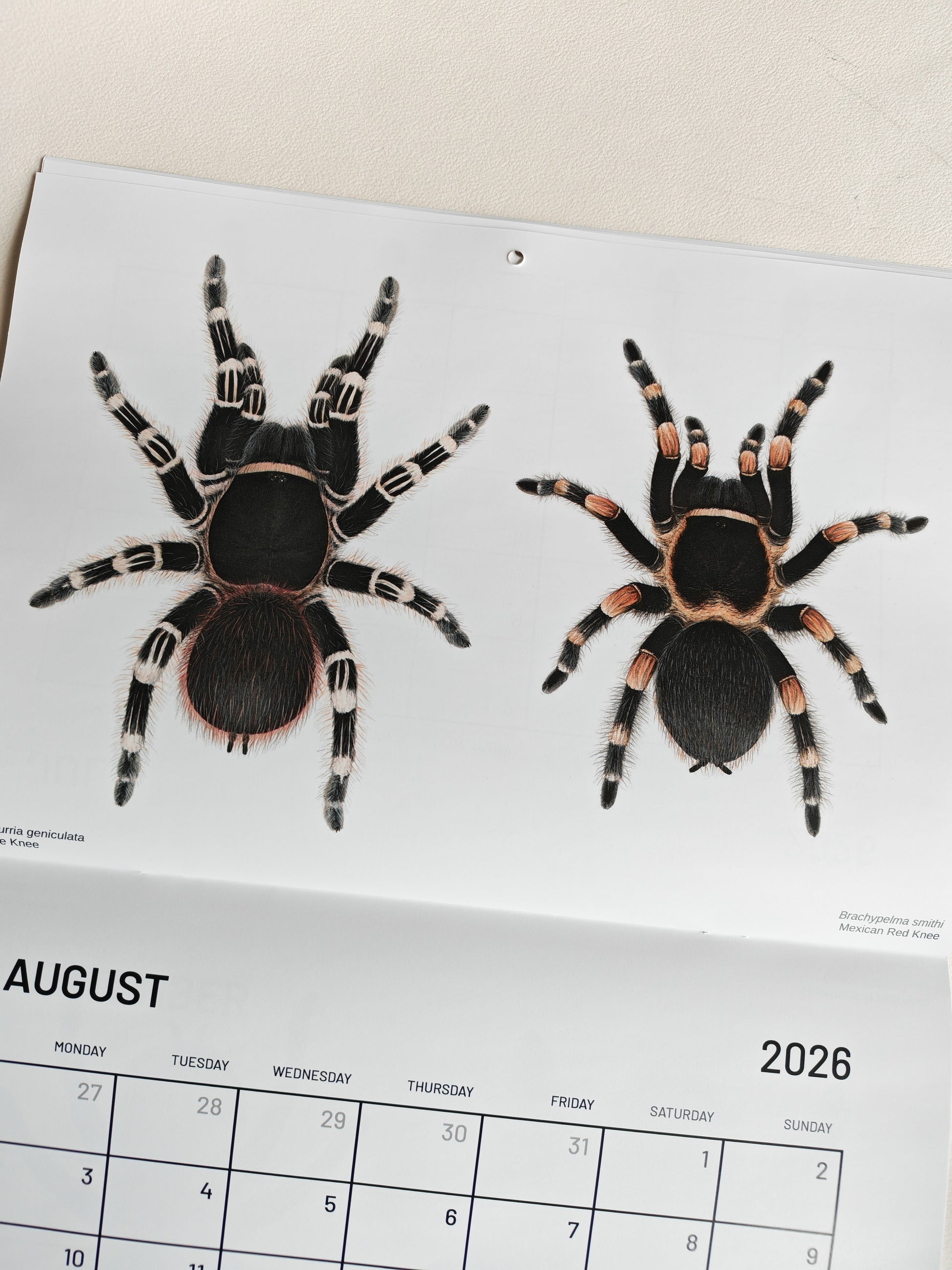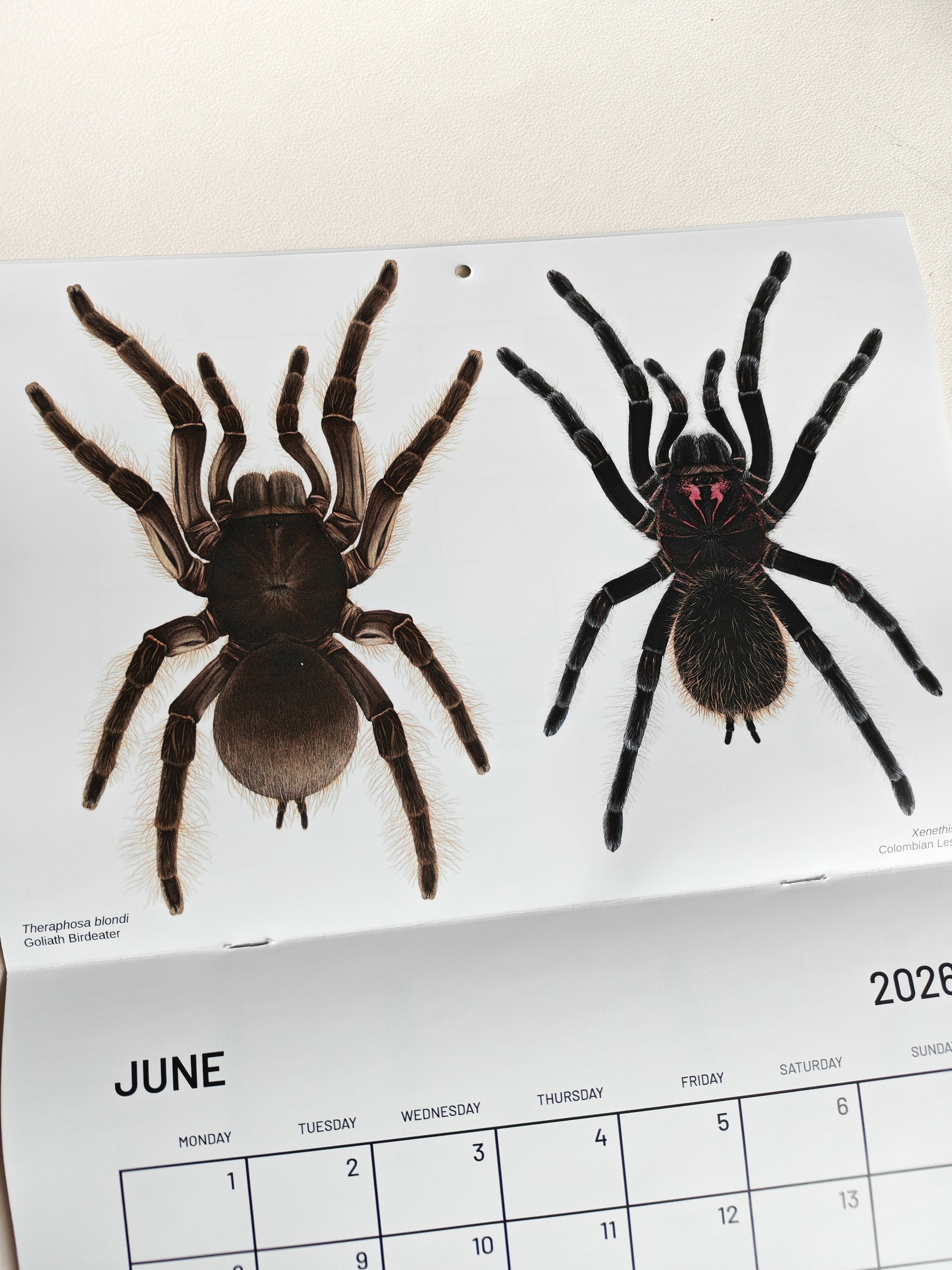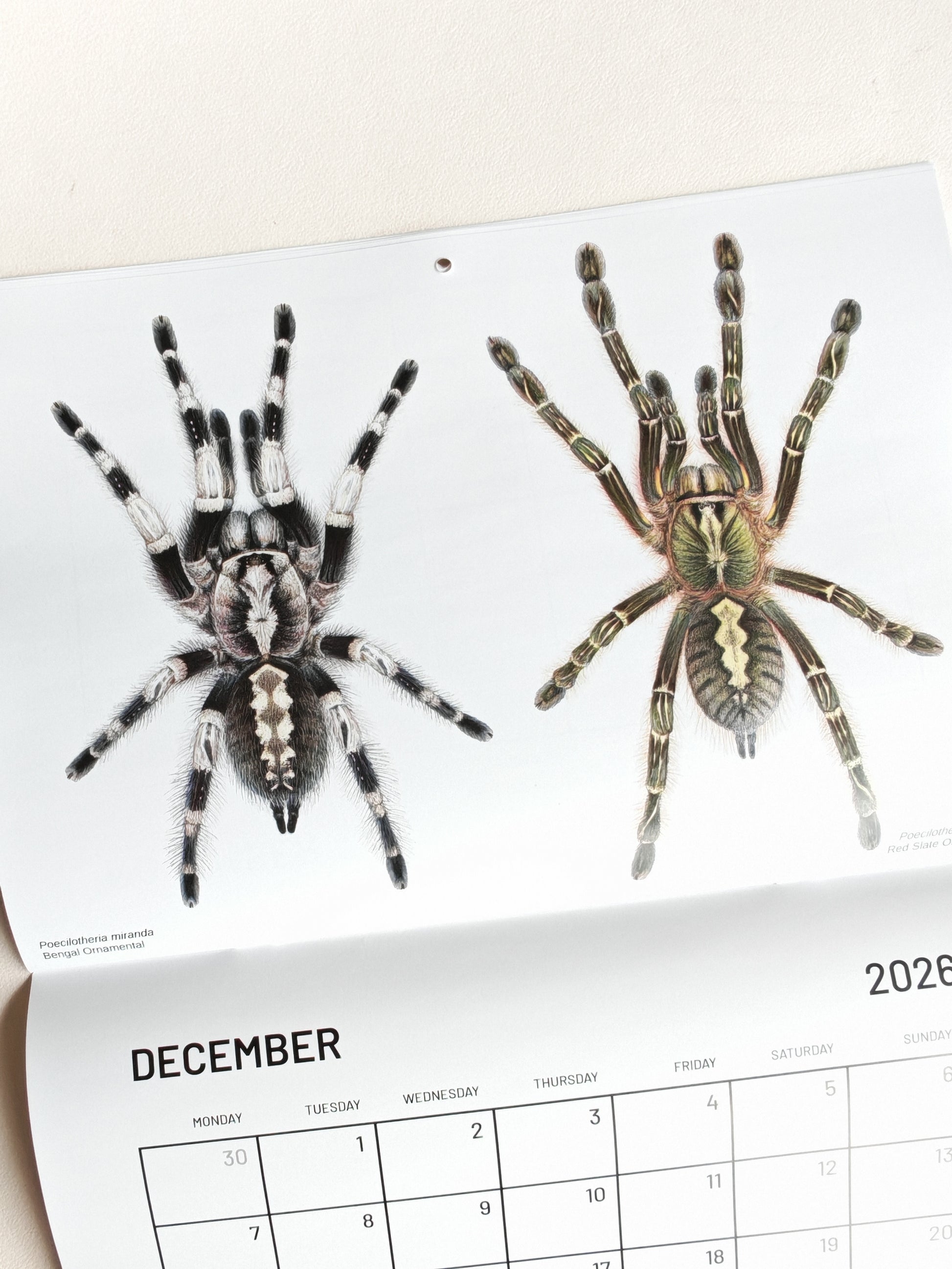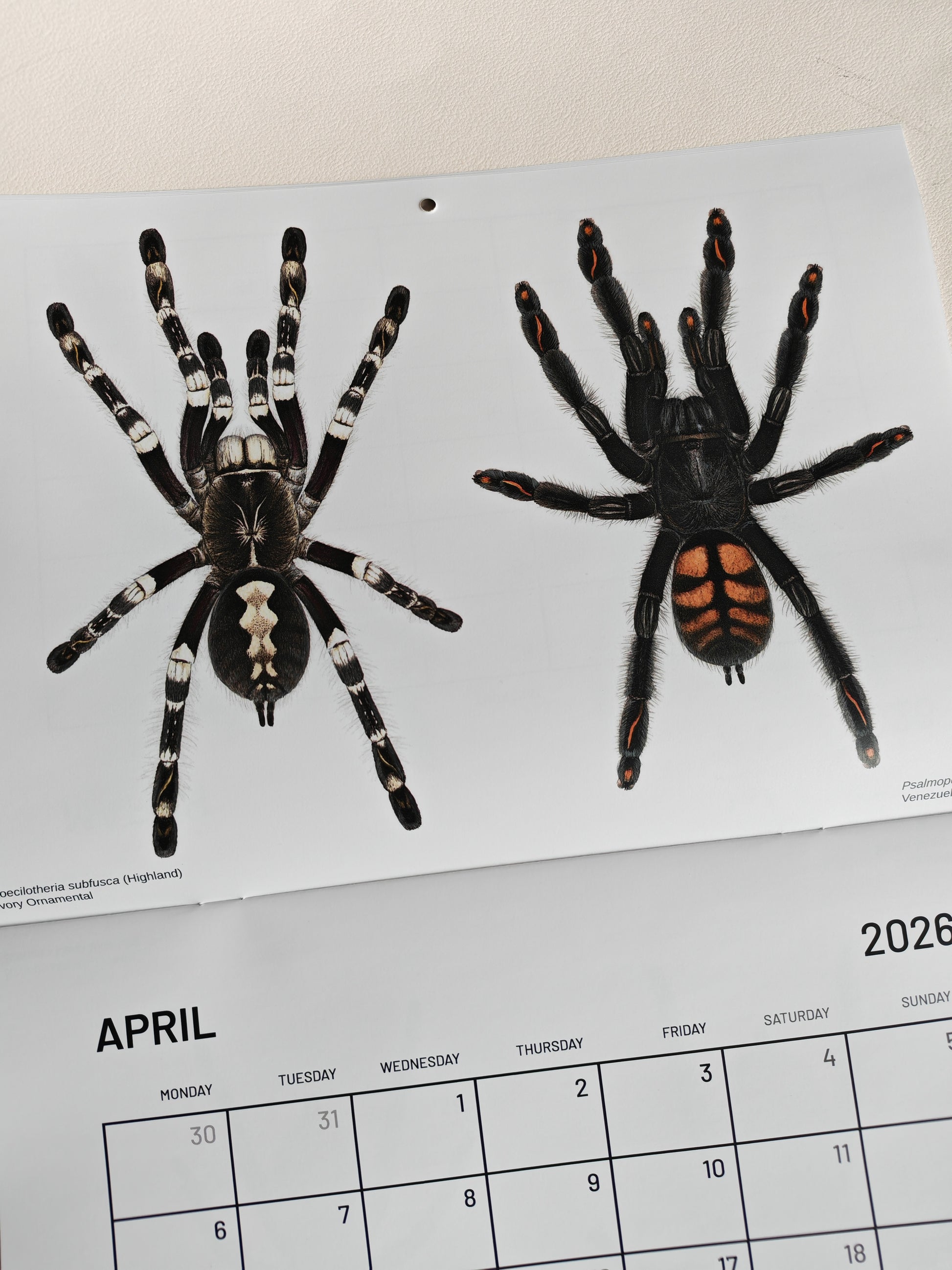 Tarantulas artwork calendar 2026